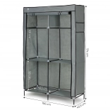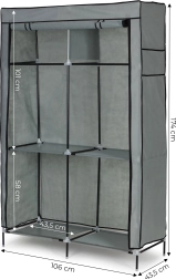 La stabilité est assurée par des tubes métalliques reliés par des connecteurs en polypropylène ; la housse textile avec fermeture zippée et façade enroulable protège de la poussière et de l'humidité. La poche latérale pratique convient aux accessoires, ceintures et petits objets. Son design simple et universel s'harmonise facilement avec tout intérieur et sera parfait dans une chambre, un dressing, une chambre d'étudiant, une maison de vacances ou une location.