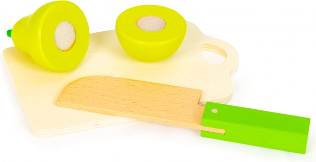 Le couteau en bois sûr et les moitiés à assembler favorisent la motricité fine, une bonne prise en main et la coordination œil-main. Idéal pour les enfants à partir de 3 ans.