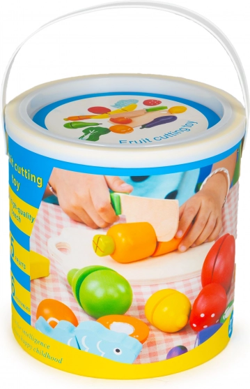Ce set de découpe en bois offre aux enfants une expérience de jeu culinaire réaliste. Les morceaux de fruits et légumes sont divisés en deux et reliés par un velcro, ce qui apporte une légère résistance et un son authentique lors de la coupe. La fabrication soignée en bois durable et les couleurs vives stimulent les sens et le jeu créatif.