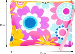 Une trousse textile colorée avec fermeture éclair et dragonne garde tous les accessoires ensemble. Facile à transporter, elle protège le contenu et aide à garder de l’ordre à la maison comme en voyage.