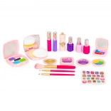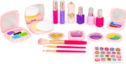 - Contenu du coffret (sélection) : trousse textile zippée, 3× pinceau, 2× gloss, 12× autocollants pour ongles, 3× vernis à ongles, 1× rouge à lèvres, 1× paillettes, 1× blush, 2× fards à paupières