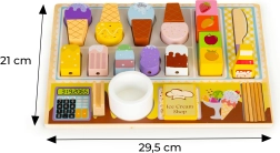 Ce set de glacier en bois invite les enfants au monde des jeux de rôle – ils peuvent devenir vendeur, client ou petit pâtissier. Des éléments fabriqués avec précision et aux détails réalistes rendent le jeu plus vrai que nature et développent la motricité fine, la coopération et la communication.