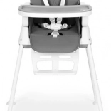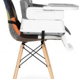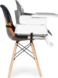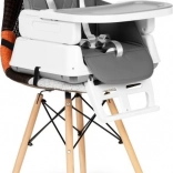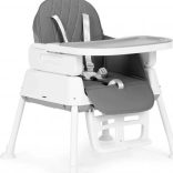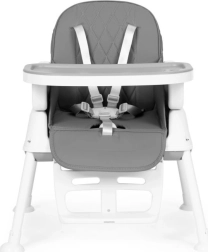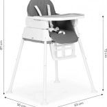 La chaise est réglable en hauteur. Vous pouvez facilement retirer les pieds et le repose-pieds, ainsi la chaise haute se transforme en chaise basse. Un atout unique est son siège que vous pouvez utiliser sur une chaise de salle à manger ou de cuisine. Le kit comprend des sangles spéciales de fixation pour l’assise et le dossier d’une chaise classique.