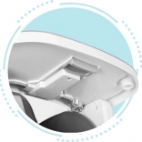 Le plateau peut être réglé en distance par rapport au dossier – il suffit d’utiliser le levier situé en dessous et de le faire coulisser. Ses atouts sont les deux couches et les bords profilés qui empêchent la nourriture de tomber par terre.