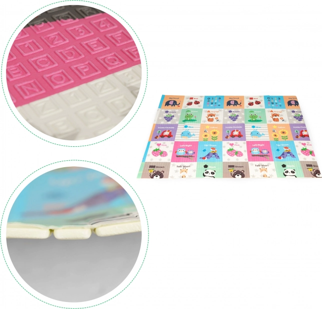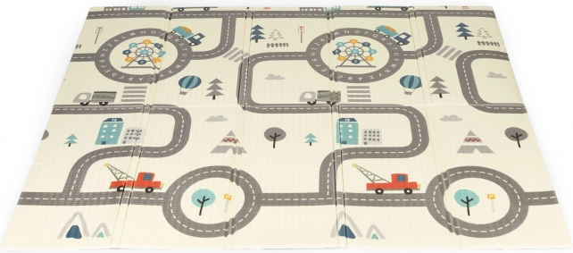 Ce grand tapis en mousse crée un espace doux et sécurisé pour jouer au quotidien, ramper et faire ses premiers pas. Chaque face propose un motif différent – routes et ville pour des trajets créatifs avec des petites voitures et animaux, chiffres et couleurs pour un apprentissage amusant. Grâce aux textures antidérapantes, il reste stable sur différents sols et l’isolation thermique protège du froid venant du sol.