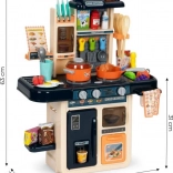 Lorsque les brûleurs sont allumés, des LED rouges s’illuminent et la cuisine joue le son de l’eau en train de bouillir. Les enfants profitent d’une ambiance authentique comme dans une vraie cuisine.
