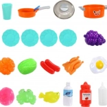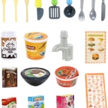 Le riche ensemble de 42 éléments comprend une casserole avec couvercle, une poêle, des ustensiles, des assiettes, une tasse, des fruits et légumes, un poisson, du poulet, un crabe, des œufs, une brique de « lait », du « ketchup », des boîtes de glace et bien plus encore. Le tout est en plastique et en carton de qualité, avec des bords lisses pour jouer en toute sécurité. La cuisine encourage le jeu de rôle, l’apprentissage des bases de la cuisine et du rangement.