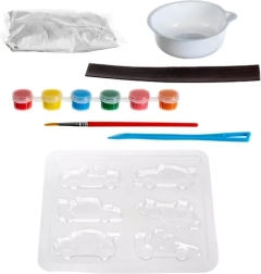 Découvrez un kit créatif amusant pour enfants, avec lequel ils fabriqueront leurs propres magnets en forme de petites voitures. L’emballage contient tout le nécessaire : moule, plâtre, pinceau et 6 couleurs. L’activité développe la motricité fine et l’imagination, et les créations finies décoreront le réfrigérateur ou un tableau magnétique. Kit DIY complet, couleurs vives et procédé facile garantissent la réussite même aux débutants.