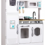 Découvrez la robuste cuisine blanche ECOTOYS, qui transforme chaque chambre d’enfant en petit studio culinaire. Grâce à ses éléments réalistes – des boutons rotatifs avec son aux portes ouvrantes et à des espaces de rangement fonctionnels – les enfants vivent un jeu authentique de cuisson, de pâtisserie et de vaisselle.