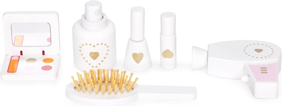 La coiffeuse de ECOTOYS n'est pas seulement un beau jouet, mais aussi une pièce de mobilier stylée. Les enfants peuvent essayer le rôle de maquilleuse, de mannequin ou de princesse et développer leurs compétences manuelles et leur imagination. Le produit est équipé de nombreux accessoires, tels qu'un petit miroir, un sèche-cheveux, une brosse et autres.