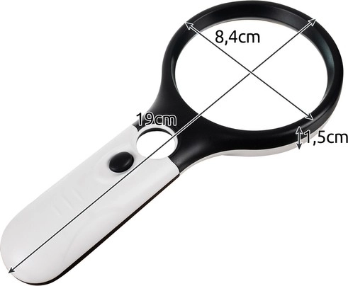 Cette loupe avec éclairage LED est conçue pour une utilisation confortable grâce à sa poignée ergonomique, qui permet une prise ferme. Grâce à ce design, sa manipulation est aisée, ce qui minimise la fatigue lors d'une utilisation prolongée. L'éclairage LED intégré est placé sous la lentille, assurant une illumination optimale et une meilleure visibilité sans créer de reflets gênants. Cette fonctionnalité est particulièrement utile pour la lecture en lumière tamisée ou pour accomplir des tâches nécessitant une grande attention.