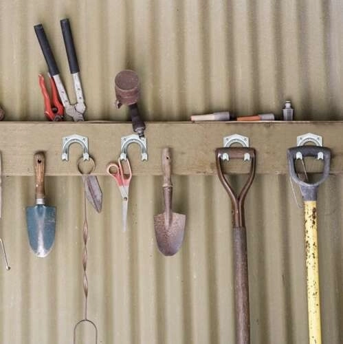 Crochets métalliques hautement résistants conçus pour organiser les outils dans votre atelier ou jardin. Grâce à leur résistance et finition de qualité, ils conviennent même pour les outils lourds.