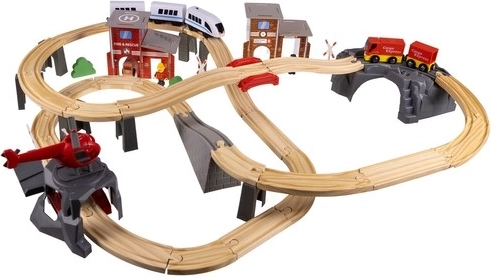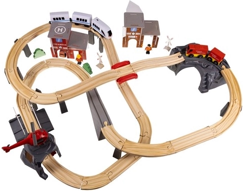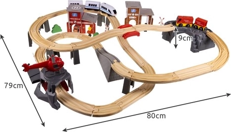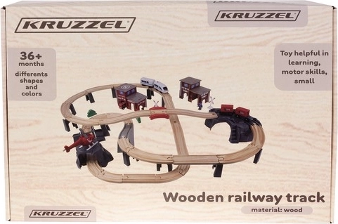 Kruzzel 22754 Circuit de train en bois à piles 70 pièces, 480 cm