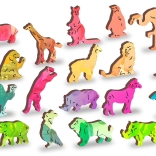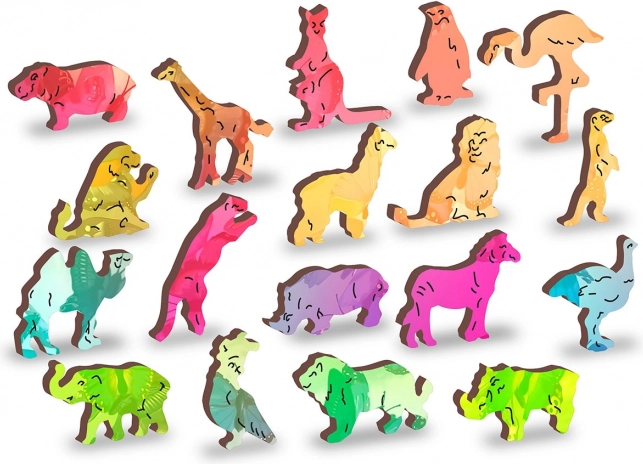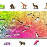 Le puzzle contient des pièces en forme d'animaux et d'objets qui peuvent être utilisées comme de petites figurines.