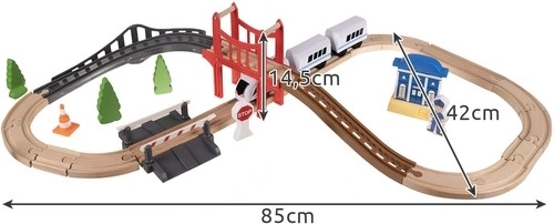 Ce circuit de train en bois est la solution idéale pour encourager la créativité et l'imagination des enfants. Il est conçu pour que les enfants puissent s'immerger dans le monde du divertissement ferroviaire, que ce soit dans le confort à la maison ou à l'extérieur. L'ensemble comprend au total 37 éléments soigneusement conçus, y compris un pont et des bâtiments qui apportent des éléments réalistes à l'amusement.