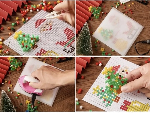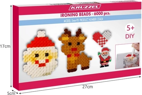 - 6000 perles (13 couleurs), 2 plaques, 15 modèles, 2 grandes extensions/plaques, 10 aimants autocollants, 15 suspensions colorées, 5 papiers sulfurisés pour repasser, pince