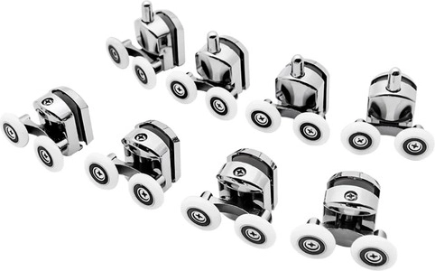 L’emballage contient 4 doubles galets supérieurs et 4 doubles galets inférieurs + 8 butées. Convient aux profils droits et semi-circulaires et à divers types de cabines.