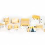 Avec la maison, vous recevez 4 poupées et 19 pièces de mobilier en bois pour décorer les différentes pièces de la maison, rendant le jeu encore plus captivant.