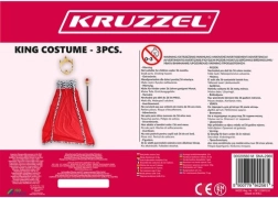 Ce set complet transforme votre enfant en un roi charmant en un instant. Cape en textile doux d’un rouge profond, bordée de fausse fourrure noire et blanche, se noue avec de longs liens pour un port confortable et sûr. Sceptre léger avec « pierre précieuse » rouge pour donner de l’autorité au costume, et couronne dorée flexible avec pierres colorées pour parfaire l’allure royale.