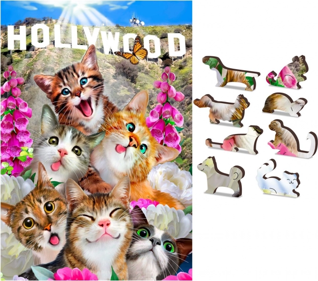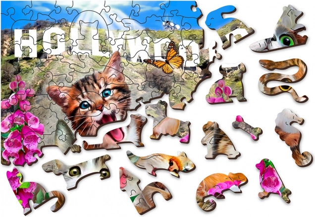 Puzzle en bois Chatons à Hollywood - 2-en-1, 75 pièces