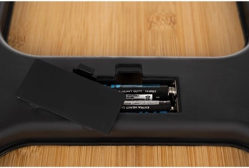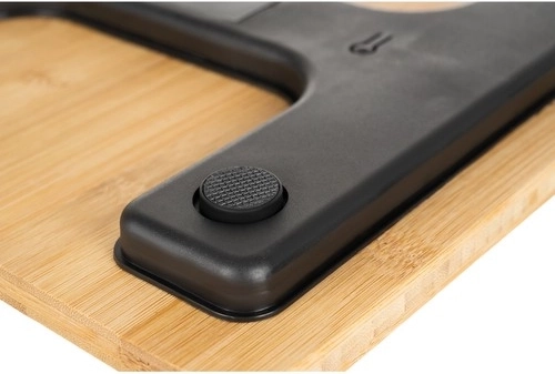 Plateau en bambou résistant, agréable au toucher, et pieds antidérapants pour une pesée sûre même sur des carreaux lisses.