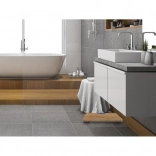 - plateau en bambou naturel qui s’accorde avec une salle de bain moderne
