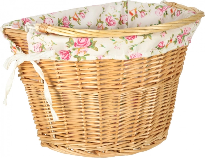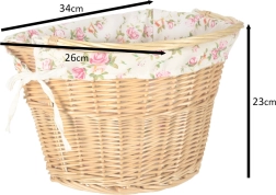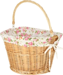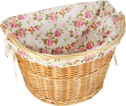 Élégant, ce panier en osier rend chaque trajet plus agréable. Grâce à son intérieur spacieux, vous emportez facilement un sac à main, un petit sac à dos et de petites courses. La doublure textile à motif fleuri décore tout en protégeant vos affaires des rayures et des salissures.
