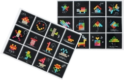 Un ensemble complet pour les premières notions de mathématiques et la création. Les enfants s’exercent à l’addition, à la soustraction et composent en même temps des motifs joyeux selon leur imagination ou des modèles.