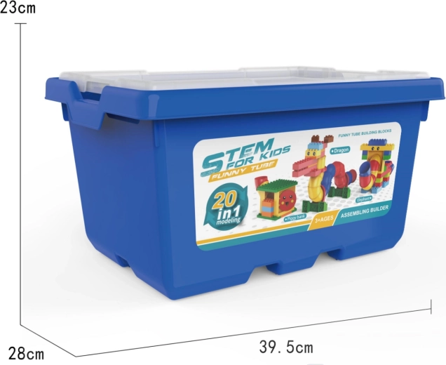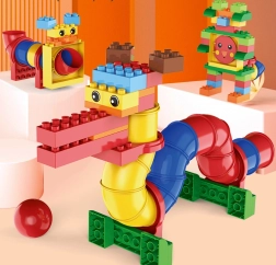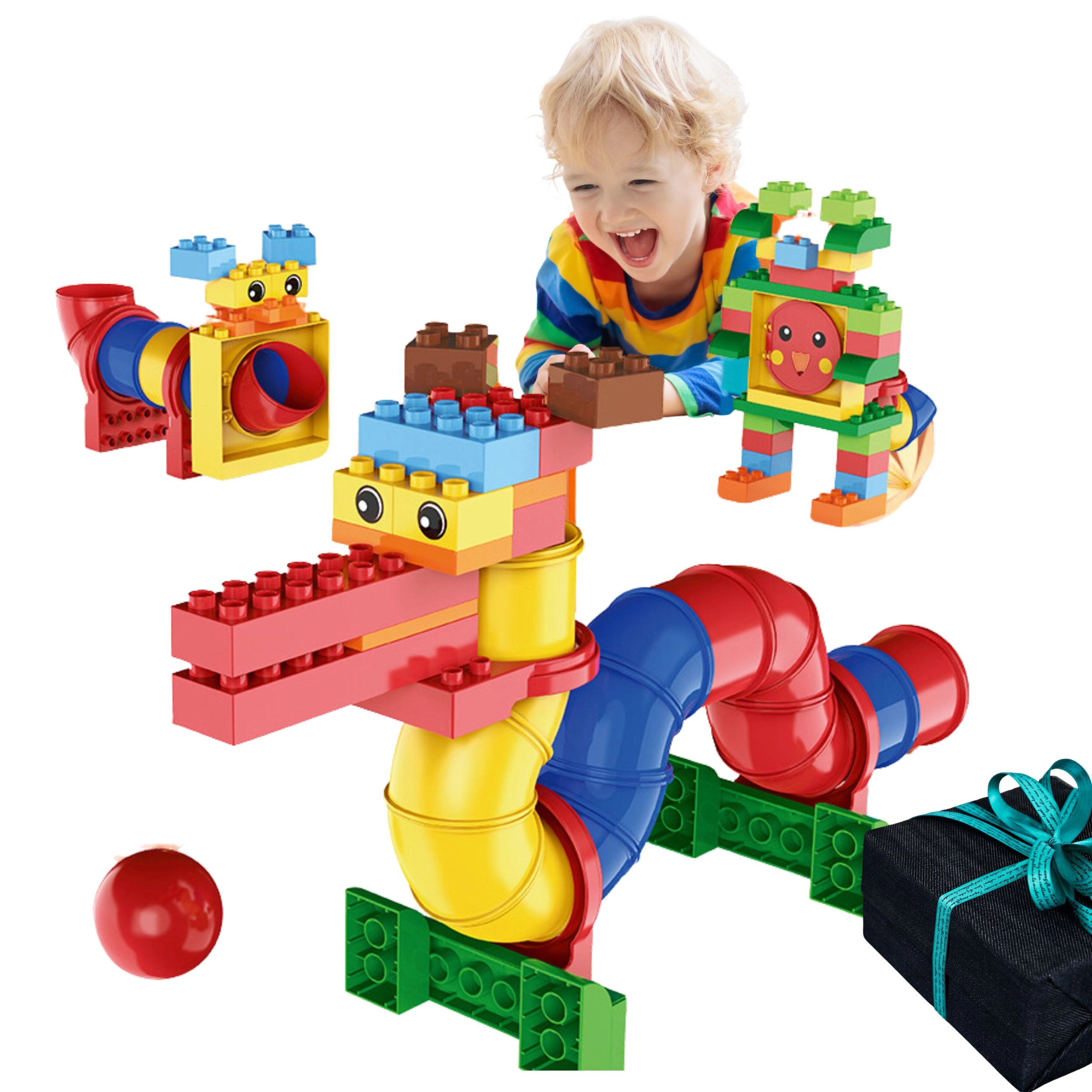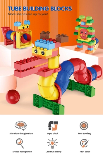 Le set offre de nombreuses possibilités de jeu : les enfants peuvent construire jusqu’à 20 modèles différents et tester comment une bille circule à travers les segments tubulaires. Les pièces « chunky », plus grandes, sont confortables pour les petites mains et favorisent l’exploration autonome et la créativité.