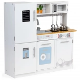 Cette cuisine pour enfants offre tout ce dont un petit cuisinier a besoin. Sa construction stable et robuste garantit la sécurité pendant le jeu. Les enfants s’amuseront avec les boutons rotatifs, le four et le micro-ondes ouvrants, ainsi que le grand réfrigérateur avec congélateur. Avec cette cuisine, l’enfant peut imiter les cuisiniers adultes et acquérir ses premières compétences culinaires.