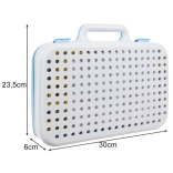 Toutes les pièces de l'ensemble sont rangées dans une valise légère et facilement transportable, permettant d'emporter le jouet partout avec soi.