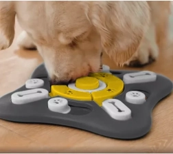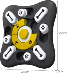 - Grand nombre de compartiments - Le chien découvre des friandises dans chaque compartiment, tandis que les puzzles centraux peuvent être tournés à 360 degrés et émettent des sons qui éveillent la curiosité.