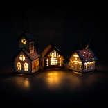 Ce charmant double édifice religieux en bois est une décoration pensée pour illuminer votre maison d’une lumière douce. Grâce à la bougie LED à l’intérieur, il crée une ambiance agréable et se distingue surtout le soir, lorsque les détails ajourés et les croix sur les pignons des toits sont joliment rétroéclairés.