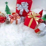 La fausse fourrure blanche neige confère au sapin un look exclusif et crée un fond doux et cosy pour les cadeaux et les décorations.
