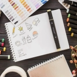 Chaque marqueur possède une pointe fine ronde pour les détails et une pointe biseautée pour le remplissage des aplats, les ombrages et la calligraphie. Avec un seul set, vous gérez l’esquisse et la mise en couleur finale.