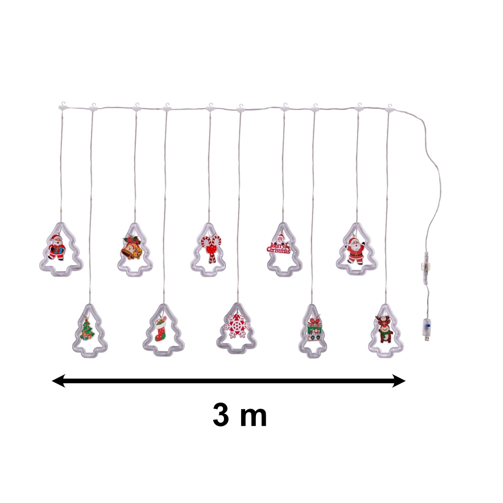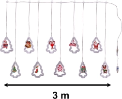 Cette guirlande rideau LED de Noël est une décoration idéale pour fenêtre, mur ou encadrement de porte. Grâce au long câble d’alimentation et au connecteur USB, vous la branchez facilement à un adaptateur, une batterie externe ou un ordinateur portable. La lumière blanc chaud et les images colorées du PÈRE NOËL, de rennes et de flocons de neige apportent à l’intérieur une touche magique unique.