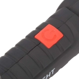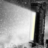 Le panneau LED COB principal offre un faisceau large et homogène, la LED frontale sert de lampe ponctuelle. Plusieurs modes sont disponibles, dont 100 %/50 % de luminosité, lumière rouge de signalisation et stroboscope rouge. La batterie rechargeable se recharge facilement via microUSB.