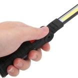 Lampe d’atelier magnétique pratique avec puissante lumière LED COB, poignée pliable et crochet pivotant pour la suspension. Propose plusieurs modes d’éclairage, recharge microUSB et un aimant puissant dans la base pour une fixation solide sur le métal. Idéale pour la voiture, l’atelier et la maison.