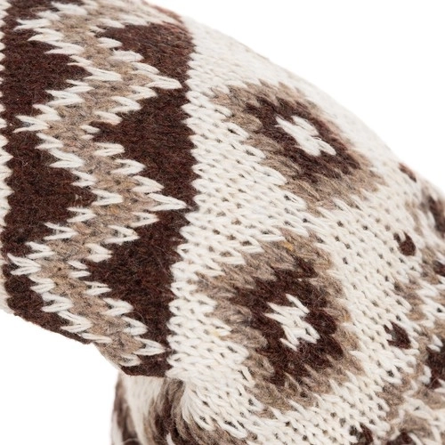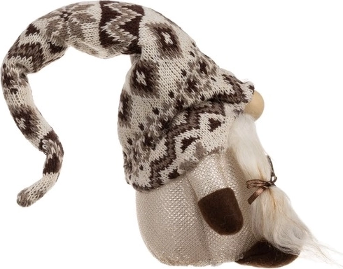 Le lutin avec un chapeau à motifs tricotés et une fausse fourrure offre un look rustique chaleureux idéal pour la décoration festive.