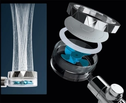 La turbine à l'intérieur de la pomme de douche augmente la pression de l'eau, garantissant un flux plus fort et plus efficace. Profitez d'une douche luxueuse sans gaspiller d'eau inutilement.
