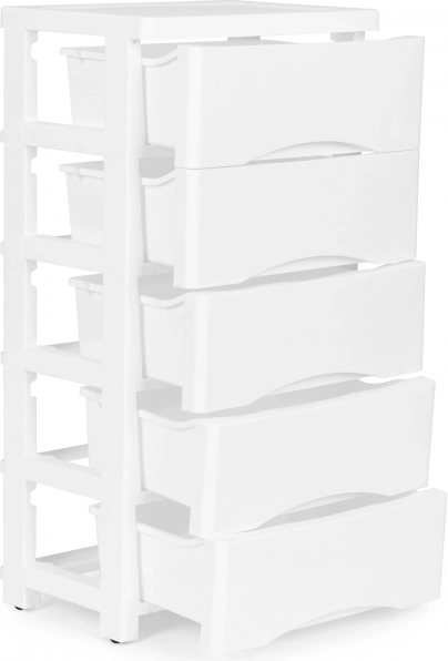 Pratique armoire mobile avec cinq tiroirs coulissants, idéale pour la salle de bains et la chambre d’enfant. Elle offre une structure stable, un plastique résistant, des butées de sécurité des tiroirs et des roulettes pour un déplacement facile. Son design blanc minimaliste s’intègre à tout intérieur et le montage facile vous fait gagner du temps.