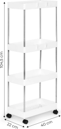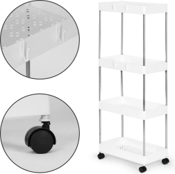 Le support de salle de bain ou de cuisine en plastique est idéal pour quiconque cherche fonctionnalité et légèreté en un seul produit. Les quatre étagères offrent beaucoup d'espace de rangement pour divers besoins, des cosmétiques aux serviettes et produits d'hygiène.