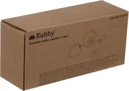 Les capsules réutilisables RUHHY sont fabriquées en plastique alimentaire résistant et équipées d’un joint en silicone et d’un microfiltre en acier inoxydable. Elles retiennent ainsi les dépôts, intensifient les arômes et garantissent une boisson limpide sans particules fines. Le couvercle avec orifice précisément façonné facilite l’écoulement de l’eau depuis la machine et évite les fuites hors de la capsule.