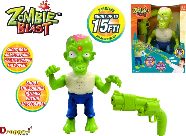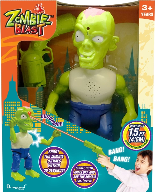 Les jeunes shérifs peuvent améliorer leurs compétences de coordination avec style grâce à cet incroyable set de tir professionnel Zombie. Ce set ingénieux utilise des faisceaux infrarouges au lieu de balles, permettant aux tireurs débutants d’atteindre leurs cibles jusqu’à 6 m de distance. Ils peuvent faire tomber les zombies, et lorsqu’ils touchent leur cible, ils entendent les gémissements caractéristiques du zombie tandis que des parties du corps se détachent. C’est un excellent moyen non seulement de stimuler l’imagination et d’encourager le jeu, mais aussi d’améliorer la coordination œil-main, et grâce au ciblage infrarouge sécurisé, il convient également à une utilisation en intérieur
