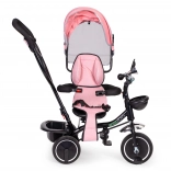 Le tricycle pratique pour enfant ECOTOYS combine confort et sécurité pour les sorties quotidiennes. Il offre un siège pivotant à 360°, un auvent pliant, une poignée de guidage avec direction et une structure en acier pour une longue durabilité. Grâce aux ceintures de sécurité et accoudoirs, aux repose-pieds pliants et aux paniers et poches de rangement, il est idéal pour les enfants de 12 mois à 4 ans.