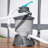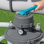 La filtration à sable d’une capacité de 3596 litres par heure assure une eau propre rapidement et efficacement.