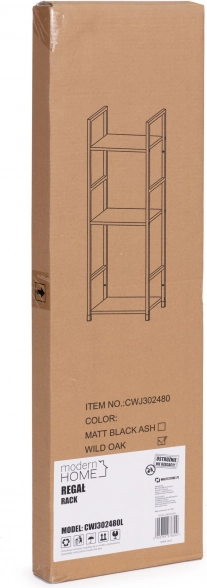 Les étagères en panneau MDF à surface décor bois sont durables et faciles à entretenir. Le cadre métallique peint par poudrage en profilés carrés (12 mm) assure solidité et longévité. Les embouts de protection préservent votre sol, et l’équerre de fixation murale fournie améliore la sécurité dans les foyers avec enfants.