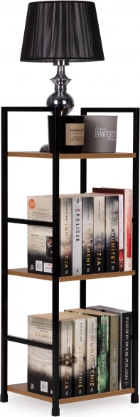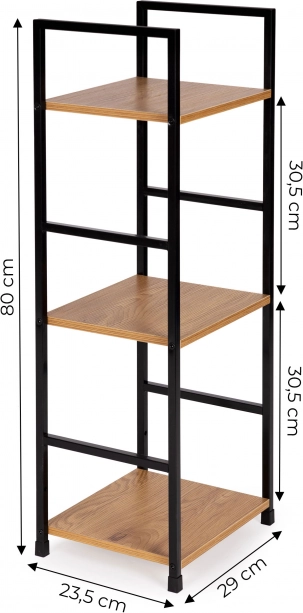 Bibliothèque stylée de style industriel alliant cadre en métal noir et étagères en MDF décor bois. Elle offre 3 étagères pratiques, une structure stable et un usage polyvalent au salon, dans la chambre, l’entrée ou la salle de bain. Grâce à ses dimensions compactes, elle convient aussi aux petits espaces, se monte facilement et ne raye pas le sol grâce aux embouts de protection.