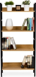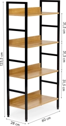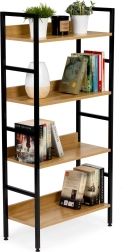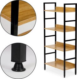 Une étagère élégante de style loft, mêlant bois et métal, apporte ordre et design à votre intérieur. Elle offre 4 étagères spacieuses en MDF à décor bois, un cadre métallique stable avec peinture époxy et des pieds réglables avec patins de protection. Grâce à ses dimensions compactes, elle est idéale pour le salon, la chambre, l’entrée et la salle de bain et peut être fixée au mur pour une sécurité maximale.