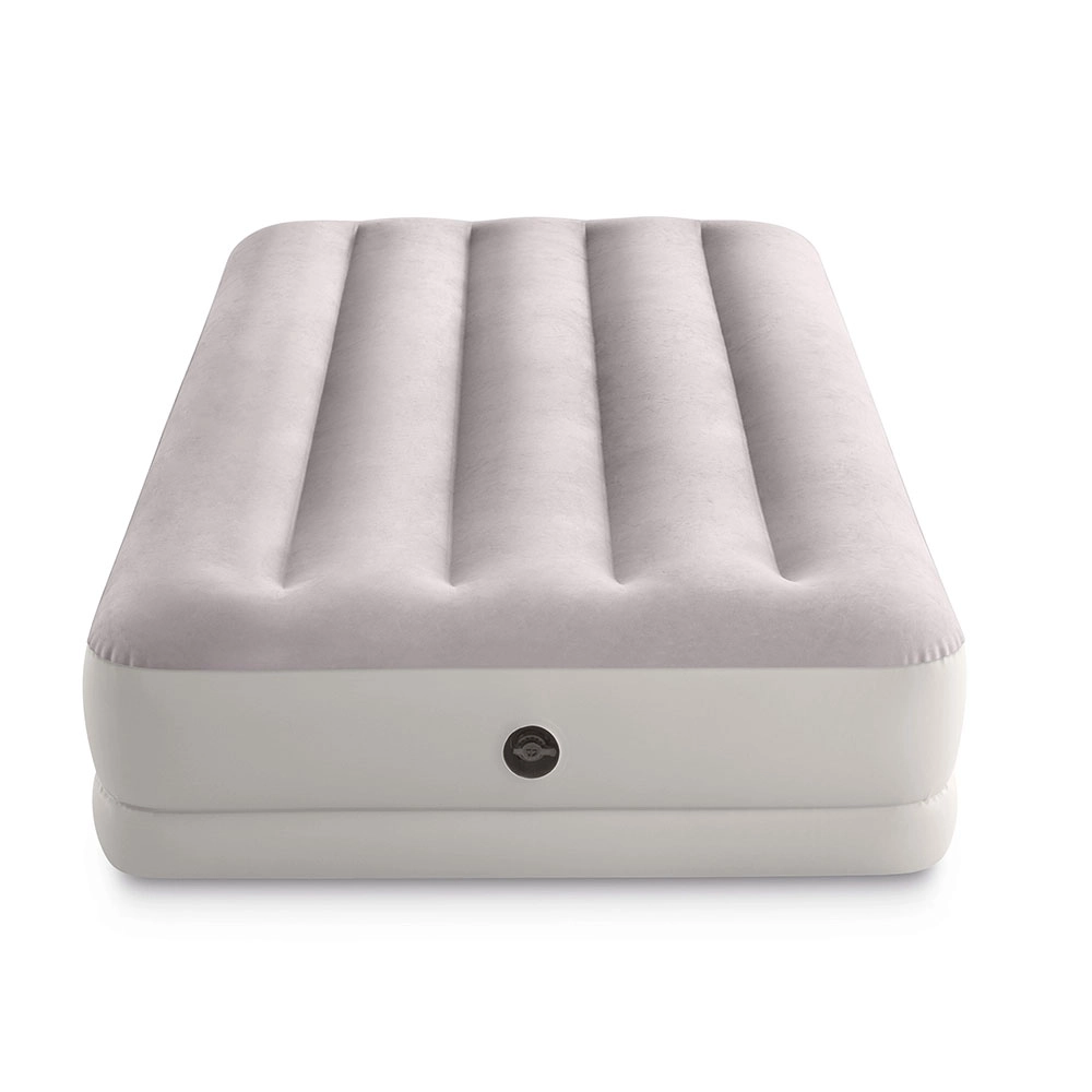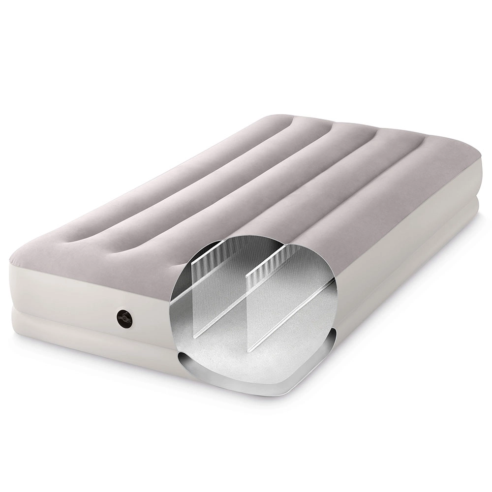 Le lit gonflable INTEX combine un matériau PVC robuste avec une surface floquée douce, agréable au toucher, pour améliorer le confort de sommeil. Sa structure surélevée avec chambres longitudinales et renforts internes assure une stabilité sans effet de balancement et un soutien fiable de la colonne vertébrale.